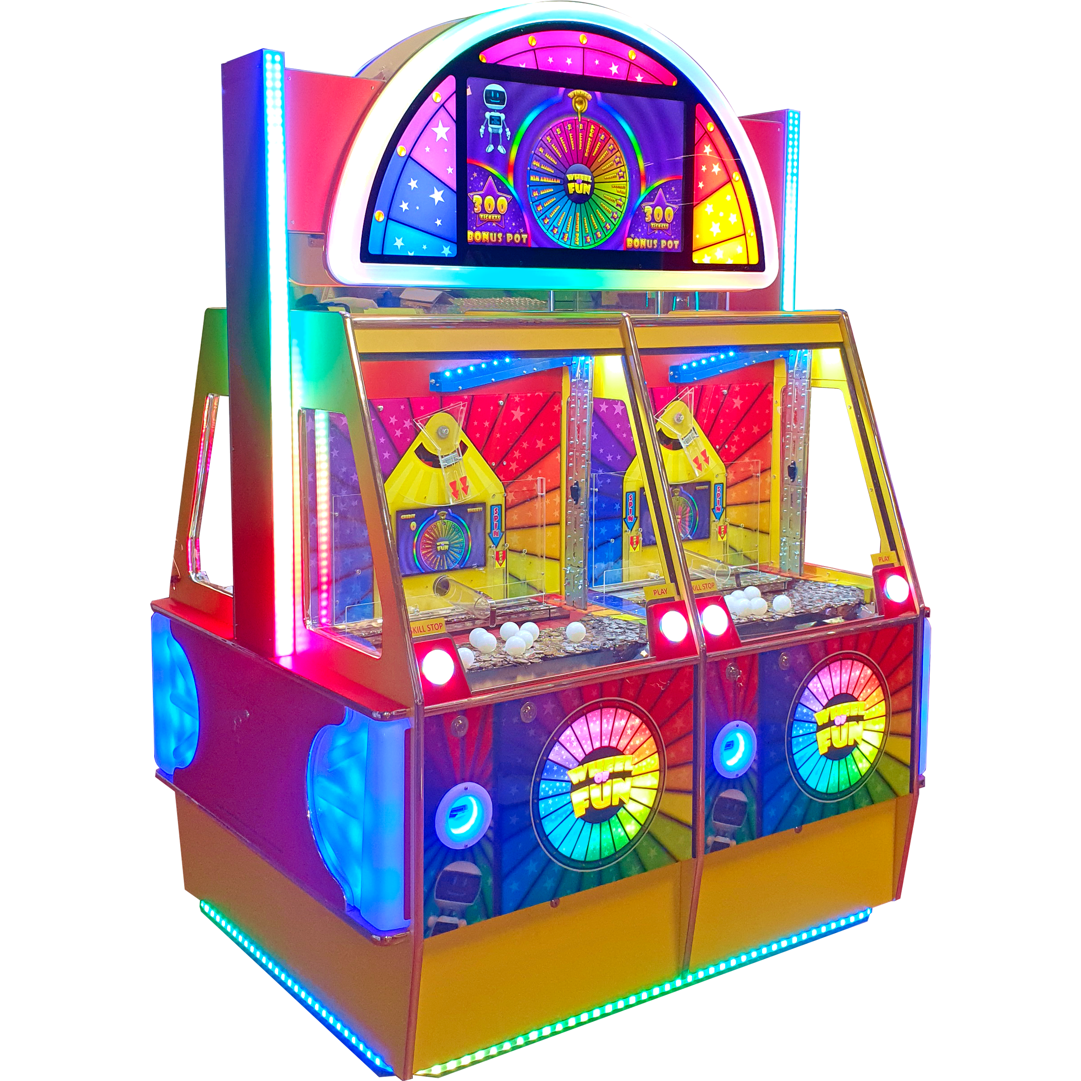 Prize Dispensing: Upon reaching a certain coin threshold, a prize is automatically dispensed from the spiral prize rail.